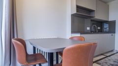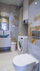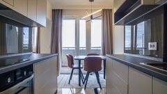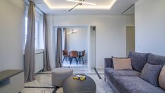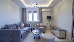 Na impresivnih 72 m² proteže se trosoban stan izuzetno sofisticiranog stila i svedene estetike. U potpunosti je namešten ekskluzivnim nameštajem i tehnikom, dok su podovi u celom prostoru oplemenjeni stilskim keramičkim pločicama. Elegantna rasveta i prozorski profili čine da enterijer bude izuzetno lepo osvetljen i prefinjen. Poseduje dve spavaće sobe, dnevni boravak, dva kupatila i terasu sa širokom panoramom. Privatan parking zgrade donosi dodatnu praktičnost.