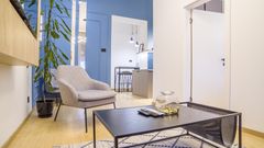 Unutar istorijske zgrade s početka 19. veka u centru Novog Sada, nalazi se savremen stan spreman za iznajmljivanje. Enterijer je opremljen modernim nameštajem i obojen u suptilne, spokojne nijanse, stvarajući zonu relaksacije. Sa jednom spavaćom sobom i dnevnim boravkom, idealan je životni prostor za urbane pojedince ili parove. Prostor je potpuno renoviran 2023. godine, a poseduje impresivnu visinu plafona od 3.48 m.