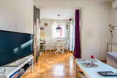 Jugozapadno orijentisan dvosoban stan u širem centru Zemuna, u ulici Teodora Hercla, nekadašnjoj Prilaz ulici. U okolini se nalaze škole, vrtići, supermarket koji radi 24/7, park i Dunav. Stan ima zastakljenu terasu i pripadajuće parking mesto u dvorištu zgrade. Ulaz na parking je regulisan rampom sa daljinskom kontrolom. Stan se prodaje namešten, jer je većina nameštaja rađena baš po meri stana. Sva tehnika u kuhinji (frižider, mašina za pranje sudova, rerna i ravna ploča), slavine i tuš su vrhunskog kvaliteta i renomiranih proizvođača. Stan je vrlo malo korišćen i prodaje se u izvornom stanju (godina gradnje je 2013-ta). Terasa je naknadno zastakljena sedmokomornom PVC stolarijom. Grejanje stana i vode je na gas i može se programirati u skladu sa potrebama za optimalan utrošak gasa. U stanu takođe postoji i bojler koji možete koristiti u vanrednim situacijama. Kotao se nalazi u kupatilu i ograđen je ukrasnom maskom. Svaki prozor ima roletnu i ugrađene rolo komarnike.