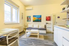 U samom centru Beograda se prodaje ova savremena nekretnina, kompletno nameštena i adaptirana kao dva potpuno funkcionalna apartmanska smeštaja, sa dva kupatila i dve kuhinje. Postoji mogućnost da se nepokretnost kupi i sa oformljenim biznisom za stan na dan, ali i bez ove opcije. Zgrada je nadomak Trga republike i bogate beomske atmosfere Skadarske ulice. Kako je dvostrano orijentisan, stan je izuzetno sunčan i svetao. Zgrada ima oazu u vidu dvorišta koje redovno osvaja nagrade najlepšeg u Beogradu.