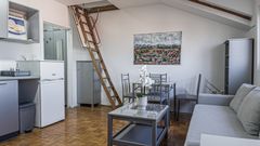 Prodaje se kompletno nameštena garsonjera u Danteovoj ulici, na 5. spratu zgrade bez lifta. Stan je idealan za mlade i studente, kao i za investiciju za izdavanje. Garsonjera se prodaje sa svim stvarima, bez potrebe za dodatnim ulaganjima. Posebnu funkcionalnost pruža galerija pretvorena u spavaći kutak, čime je prostor racionalno iskorišćen.