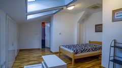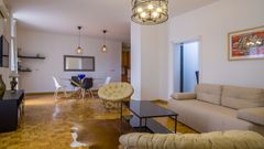 U samom srcu starog dela Beograda se prodaje raskošan trosoban dupleks koji na jedinstven način spaja klasiku i modernu eleganciju. Nalazi se na 4. i 5. spratu zgrade koja je pod zaštitom spomenika kulture Beograda. Kvalitetno je renoviran, uključujući PVC stolariju, hidroizolaciju, elektroinstalaciju, vodovod i sanitarije. Prostire se na 144 m², od kojih je impresivnih 73m² otvorenog prostora na donjem nivou. Stan ima kapacitet da se adaptira u četvorosoban. Iz dnevnog boravka i sa terase stana pruža se otvoren pogled na grad i reku. Od dodatnih pogodnosti poseduje centralnu klimu, svoj kotao za grejanje, dvoja ulaznih vrata za oba nivoa stana, pogled koji nikada neće biti narušen drugom zgradom jer su sve pod zaštitom spomenika kulture i odvojenu garažu od 14m2 koja se može dodatno kupiti uz stan. Iako je gornji nivo delimično u kosinama, prostor je lepo iskorišćen jer su kosine visoke a u delovima gde su niže je smešten plakarni prostor. U gornjem delu se nalazi i prostorija za ostavu gde se nalaze kotao za grejanje i bojler, a u donjem delu, u okviru kuhinje, takođe postoji ostava. Stan se prodaje polunamešten ili bez nameštaja, u zavisnosti od želje kupca.