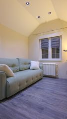 Na prodaju novija, potpuno nameštena kuća, sa velikim dvorištem i zelenilom. Kuća je uknjižena, vlasništvo 1/1, 125m2 neto, (150m2 bruto ), na potpuno ograđenom i sređenom placu površine 400m2. Nalazi se na mirnoj lokaciji, samo 8 km od centra grada, idealna za porodičan život i druženje sa prijateljima. *Spratnost - dve etaže donja etaža - otvoreni koncept - veliki dnevni boravak sa izlazom na terasu i dvorište. Potpuno nova moderna kuhinja sa šankom, kancelarijskim delom i manje kupatilo. gornja etaža - velika otvorena soba, sa izlazom na terasu sa fenomenalnim pogledom na grad, dve odvojene spavaće sobe, i velikim kupatilom sa džakuzijem. *Grejanje centralno, ( pelet, strujni kotao ili kamin ) sa delimičnim podnim grejanjem. *Dvorište, 400m2, potpuno ograđeno, sa puno zelenila i travnjakom. Veliki paviljon za sedenje, profesionalni rostilj, za nezaboravna druženja sa porodicom i prijateljima. Asfaltirani deo za parkiranje dva automobila. *Potpuno nameštena, sa svim tehničkim uređajima. Odmah useljiva. UL. Stari Vinogradi, opstina Zvezdara, Veliki Mokri Lug