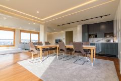 Невероятно просторная и светлая квартира площадью 250 м² представляет собой настоящий оазис роскоши и утонченного образа жизни. Квартира расположена на 6 этаже нового здания из 2020 года, откуда открывается впечатляющий вид через большие окна. С четырьмя спальнями, туалетом и двумя ванными комнатами, квартира идеально подходит для больших семей или тех, кто ценит дополнительное пространство. Меблирована в современном стиле и оснащена алюминиевыми и деревянными оконными рамами. Высокие потолки (2,9 метра) еще больше подчеркивают простор и роскошь. Для отопления используются тепловые насосы, а также есть два парковочных места в гараже, как дополнительные удобства для будущих жильцов.