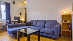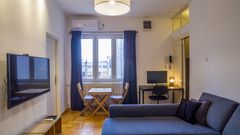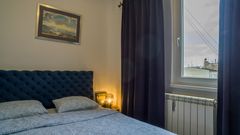 Квартира располагает просторной террасой на крыше здания с открытым видом на Народную скупщину, церковь Святого Марка и купол Храма Святого Саввы — идеальное место для отдыха и наслаждения.
