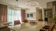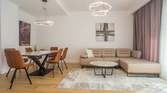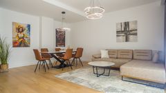 Рядом с парком, сдаётся эта изысканная квартира, сочетающая в себе 120 м² комфорта и роскоши. Включает просторную гостиную с обеденной зоной, полностью оборудованную кухню, три уютные спальни и две современные ванные комнаты. Интерьер наполнен элегантностью — высокие потолки, тщательно подобранные дизайнерские детали и качественные материалы создают атмосферу первоклассного дома. Здание новое, оборудовано лифтом, системой охраны и гаражным местом, включённым в стоимость аренды. Идеальный выбор для тех, кто ценит спокойствие, комфорт и превосходный стиль жизни.